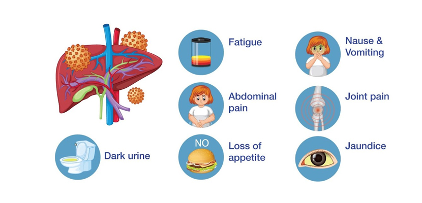 - Specific liver-related symptoms: Jaundice (yellowing of the skin and eyes), dark urine, pale stools, and abdominal pain, particularly in the upper right quadrant.