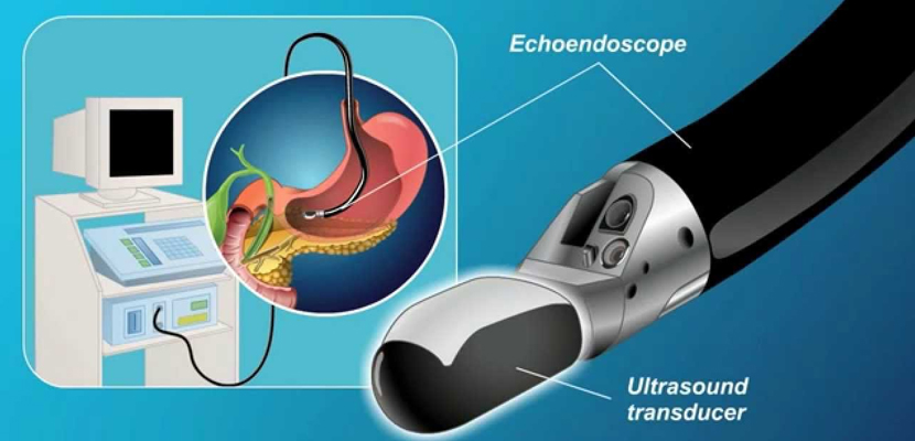 - Ultrasound, a probe on the end of the endoscope that sends out sound waves to produce images of your organs, tissues and blood vessels.